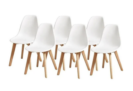 Lot of 6 dining room chairs Color: white 4 feet in natural rubberwood Inspired by the Scandinavian trend Seat dimensions: 48x55x42 cm Chair d...