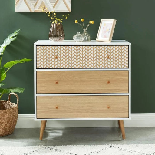 Fall in love with the Sara Scandinavian chest of 3 drawers! This chic storage solution features a sturdy structure in particle board and melamine...